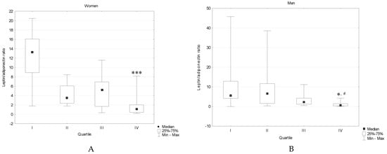 4.4. Leptin/Adiponectin Ratio Across Quartiles of Vitamin D Concentration