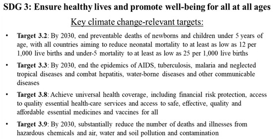 Sustainable Development Goal (SDG) 3 and key climate-relevant targets.