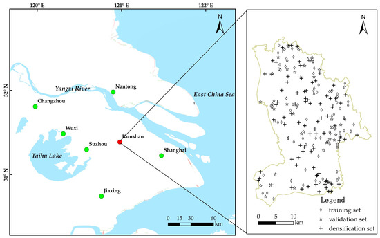 Kunshan City is in the southeast of Jiangsu Province, China, between Shanghai and Suzhou. It lies at 120°48′21″–121°09′04″ E and 31°06′34″–31°32′36″ N (Figure 1). Kunshan City has a typical northern subtropical monsoon climate. The mean annual temperature is 17.6 °C. The mean annual precipitation is 1200.4 mm. The soil of the city belongs to four soil types: Hydragric Anthrosols, Humic Gleysols, Gleyic Fluvisols, and Eutric Planosols. Hydragric Anthrosols were the main soil type and accounted for 93.8% of the soil in our study.