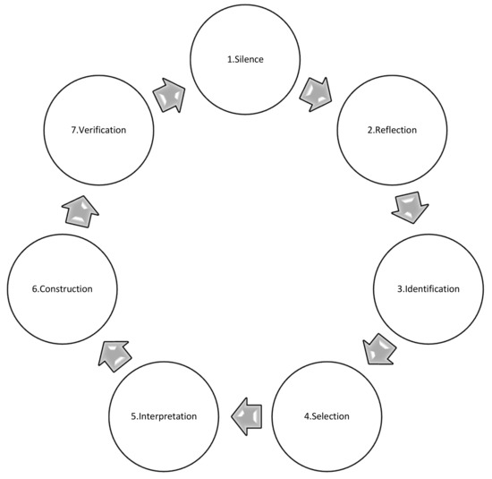 At every step, the researchers went through the research process of the Vancouver school: silence, reflection, identification, selection, interpretation, construction, and verification (see Figure 1).