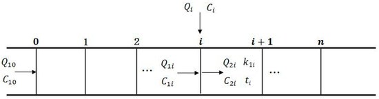 The process of little and nonpoint source input and degradation in the river is illustrated in Figure 6. In this figure, represents the th calculated element, 12; , and represent the initial flow rate and concentrations from the headwater; , and represent the incoming flow rate and concentrations from the th calculated element; , and represent the rainfall-runoff and pollutant concentrations draining into the th calculated element; , and represent the outflow and concentrations of effluent discharging from the th calculated element into the downstream; represents the pollutant degradation coefficient between and ; and represents the time consuming of flowing from to .