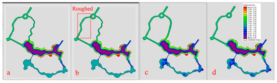 Figure 9. The river layout program. (a) Original Planning river; (b) “Roughed” river; (c) “Bilateral” rivers; (d) “Unilateral” river. - ②