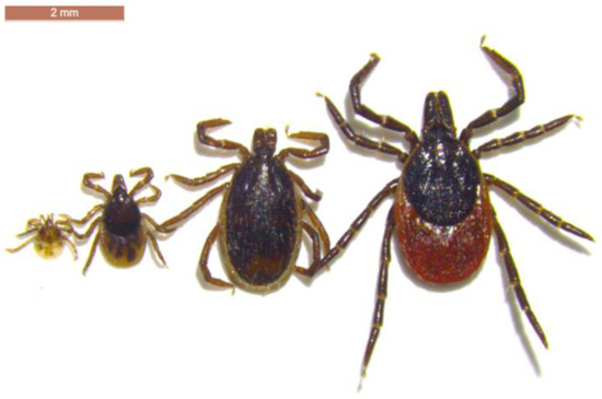 - Kurtenbach, K.; Kampen, H.; Dizij, A.; Arndt, S.; Seitz, H.M.; Schaible, U.E.; Simon, M.M. Infestation of rodents with larval Ixodes ricinus (Acari: Ixodidae) is an important factor in the transmission cycle of Borrelia burgdorferi s.l. in German woodlands. J. Med. Entomol. 1995, 32, 807–817. [Google Scholar] [CrossRef] [PubMed]