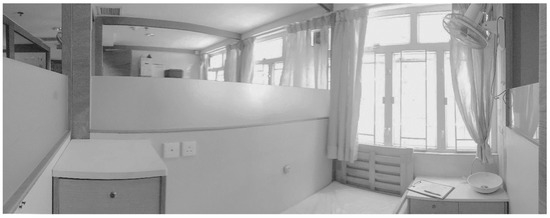 This study was conducted in Hong Kong in January 2016 and involved nine Care and Attention (C&A) homes (R1–R9) with compact living conditions. C&A homes are the main aged care facilities in Hong Kong for the aged adults with poor physical ability or mild mental disability. The service provides residential care, meals, and a limited degree of nursing care. The C&A homes adopt a compact living policy due to land and resources limitation [22]. The mean bedroom area of these investigated C&A homes is 4 m2. All C&A homes were located at podium levels (lower levels in the residential tower, usually for commercial purpose such as supermarkets and canteens, the area of which is usually larger than the residential unit) of residential towers in a high-rise and high-density residential district. (Figure 1 and Figure 2).