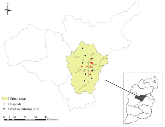 The spatial distributions of air monitoring sites and hospitals in Taiyuan, China.