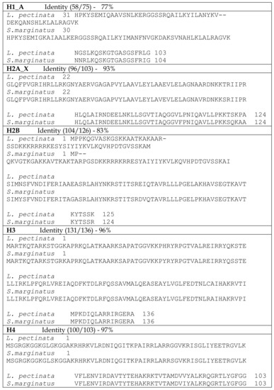 For evaluation of the evolutionary aspects of this study, we focused on the L. pectinata histone H1 variant sequences (H1_A and H1_B) that were obtained, to determine if these variants have a common ancestor found in other marine organisms and to study their evolution among different species. These findings contribute to the study of functional differentiation of the histone H1 family among mollusk species.