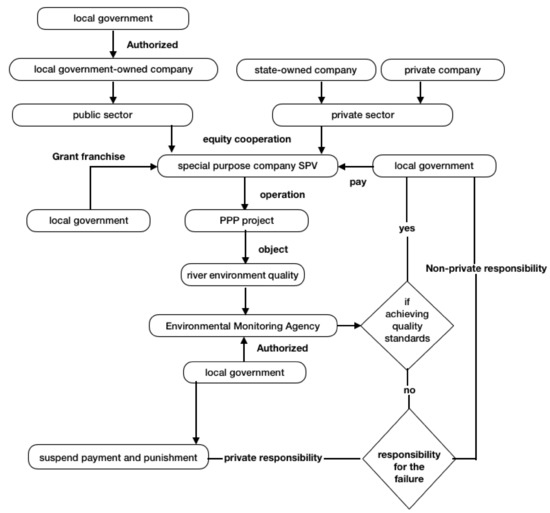 Therefore, contracts alone, which are often imperfect and incomplete, are not enough, and local governments should continuously supervise the private sector [36]. Some of the cases examined in this research showed that the private sector had complete ownership of the SPV. The UK’s latest PPP model (PF2) emphasizes that the government should act as a minor stakeholder in the SPV, which can increase the government supervision of the project and project transparency [37]. Since a project is usually entirely financed by the private sector, if a local government invests in it as a major shareholder, the project would not meet the fundamental principle of PPP risk allocation. It is necessary for the government to become a minority shareholder. Continuous supervision is necessary due to the integrated management of rivers, which involves multiple administrative departments, such as environmental protection, water conservancy, agriculture, and forestry; the implementation of a project requires the approval of different departments. The participation of the local government can reduce the difficulty of negotiations.