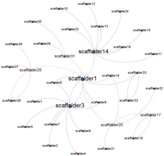 To identify potential opinion leaders with the social network method, the most important and frequently-used concept is network centrality. Network centrality measures the structural importance of actors and indicates which actor is in the center of the network. In order to use the social network method to identify opinion leaders related to unsafe behaviors, Gephi was used to map the networks consisting of nodes and edges. Gephi is a visualization tool that automatically generates and reveals patterns in the structure of each communication network []. Considering the directivity of the data collected by the questionnaire, the graphics type selected was “directed”. Figure 1, Figure 2 and Figure 3 show that there are existing networks of unsafe behavior among scaffolders, and the size of the node reflects the different influences among workers.