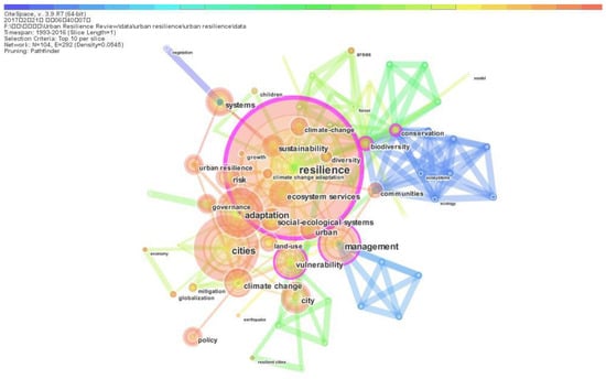 As shown in Table 3, urban resilience research mainly focused on a few topics between 1993 and 2004, such as biodiversity, environment conservation, urban systems and management measures to urban resilience. Some new topics begin to appear in urban resilience research between 2005–2010, such as adaptive theory, vulnerability analysis, ecosystem services, urbanization and land use. During 2005–2010, Resilience Alliance begins to research urban resilience from the perspective of social-ecological systems. Urban resilience started to get attention in the USA between 2011 and 2013. At the same time, researchers continue to be concerned about the topics of social-ecological systems, climate change and adaptation during this period. Each topic keep the state of prosperity between 2014–2016, management measures and biodiversity get great attentions to the urban resilience researchers with the unprecedented urbanization process and the growing number of natural disasters.