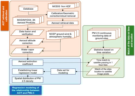 Process of modelling the relationship between aerosol optical thickness (AOT) and PM2.5.
