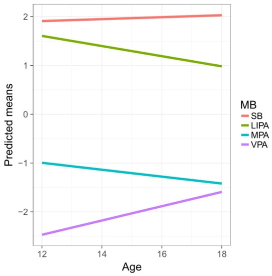 The results displayed in Table 4 support the anticipated positive association between age and the relative dominances of SB and VPA (with respect to the average contribution of the other parts). Conversely, the relative dominances of LIPA and MPA were negatively associated with age. The older they get, Czech adolescents tend to spend more time in SB and VPA at the expense of LIPA and MPA.
