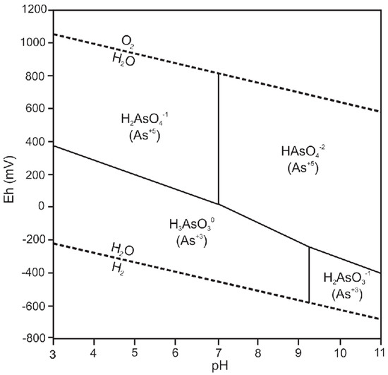 - Nordstrom, D.K.; Archer, D.G. Arsenic thermodynamic data and environmental geochemistry. In Arsenic in Ground Water, Geochemistry and Occurrence; Welch, A.H., Stollenwerk, K.G., Eds.; Springer: New York, NY, USA, 2002; pp. 1–25. [Google Scholar]