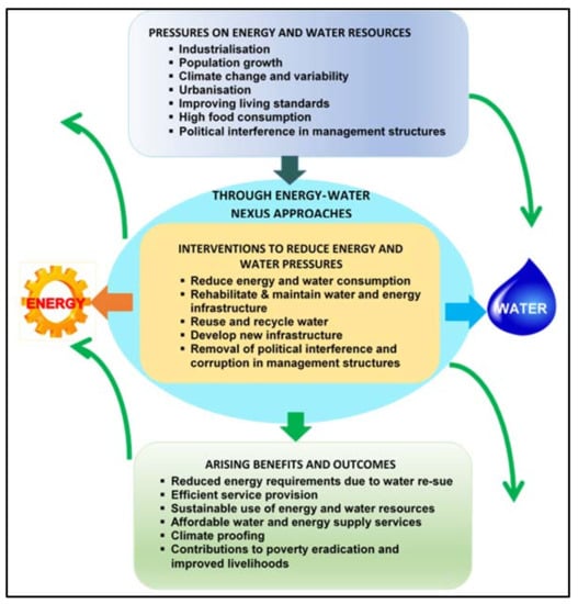 - Mabhaudhi, T.; Mpandeli, S.; Madhlopa, A.; Modi, A.T.; Backeberg, G.; Nhamo, L. Southern Africa’s water–energy nexus: Towards regional integration and development. Water 2016, 8, 235. [Google Scholar] [CrossRef]