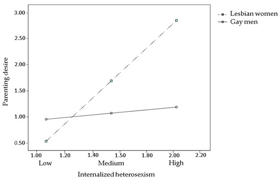 Regarding the second hypothesis, that sexual orientation concealment and internalized heterosexism negatively affect parenting desire in lesbians, but not in gay men, our findings were significant but, contrary to our expectations, they suggested that both subjective minority stressors were positively associated with parenting desire in lesbians and not in gay men, increasing the level of parenting desire in lesbians, rather than decreasing it. This unexpected finding might be read through the lens of MST and the related social pressure that some minority people could feel to conform to social expectations. Thus, it is probably that higher levels of internalized heterosexism, in addition to questioning one’s own parenting abilities [13], might lead to a need to conform to social expectations, including becoming a mother in a context that still promotes motherhood as a key value for female identity [48]. Similarly, in line with the finding discussed above—that internalized heterosexism increases parenting desire in lesbians—the fact that sexual orientation concealment increased parenting desire only in lesbians, and not in gay men, might be read through the hypothesis that concealing one’s own sexual orientation would lead lesbians to conform to societal expectations that tend to equate women to mothers. Notwithstanding these interpretative hypotheses, this finding should be qualitatively investigated to better understand how internalized stigma and sexual orientation concealment could lead to an increase in parenting desire.