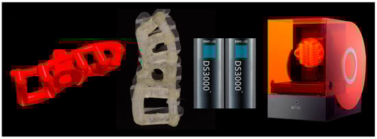 The printer used in this study was an XFAB2000®, produced by DWS, characterized by a proprietary SLA technology, with extremely accurate and precise BluEdge® laser, calibrated to obtain smooth surfaces that do not require post-production. The printer has a cylindrical working area of 180 mm in diameter, and can use 12 proprietary resins; in relation to them, the thickness of the layer is variable and can reach up to 60 microns. The printer is equipped with parametric software (Nauta®) for the automatic generation of the supports necessary for printing. Thanks to this software, the clinician can quickly draw the supports and optimize them according to his/her needs. The software allows ample freedom to modify the supports and the orientation and position of the objects to be printed in 3D, so as to favor the best quality of the surfaces of the output. The file obtained is then sent to the Fictor® proprietary software, which starts and manages the print operations.