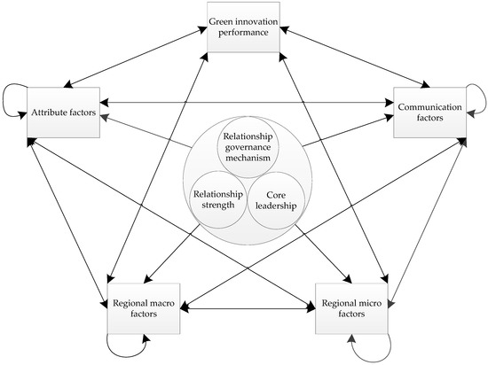 Collaborative innovation network green innovation performance-related factors relationship model.