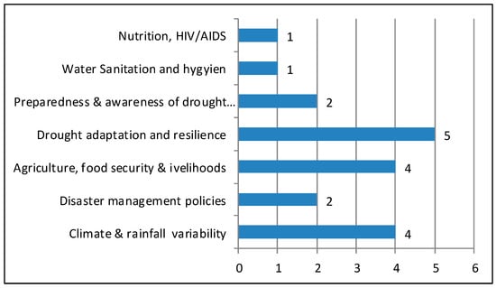 Included studies had a range of objectives, from rainfall and climate variability to food security, coping, and adaptation (Figure 2). Nonetheless, all studies aimed to demonstrate the relationship between drought resilience and well-being across southern Africa.