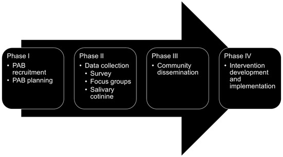 Phase 1: A Parent Advisory Board (PAB) was established. PAB members served as key informants and provided initial insights on smoking and ETS exposure in their community. The PAB also decided on the best data collection methods to gather additional information from the boarder parent community at the childcare center for the next phase.