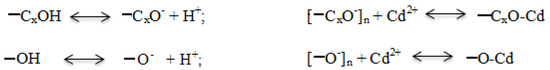 Possible mechanism of some different functional groups dissociating and complexing with Cd cations in soil.