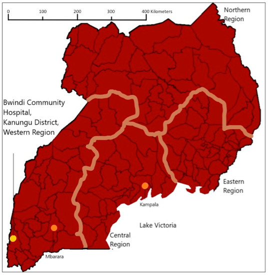 - Musinguzi, G. Uganda Radio Network (URN). In Kambuga Hospital to Close; Musinguzi, G., Ed.; Uganda Radio Network: Kanungu, Uganda, 2006. [Google Scholar]
