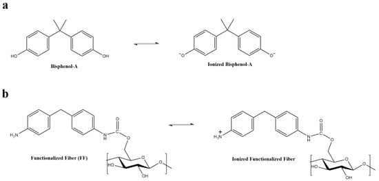 (a) Bisphenol-A (unionized and ionized forms), and (b) Functionalized cellulose fiber (unionized and ionized forms).