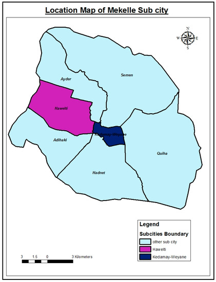 A community-based cross-sectional study was conducted in the purposely selected two sub-cities of Mekelle city, namely Kedamay-Woyane and Hawelti. This is done because according to the Mekelle city’s health desk office there is a relatively higher level of poverty in the aforementioned sub cities compared to the other sub cities. It is known in the literature that MD is associated with the level of poverty.