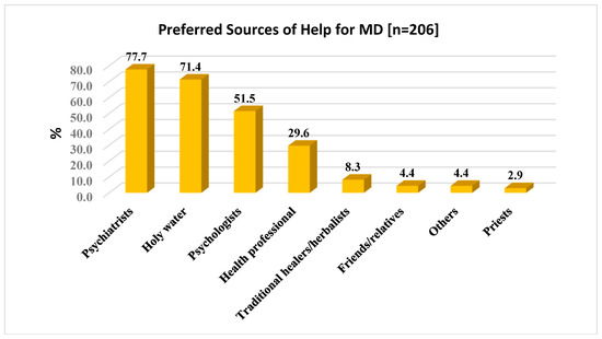 Preferred sources of help for MD (n = 206).