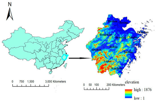 Zhejiang (27°12′–31°31′ North, 118°–123° East) is located on the southeastern coast of China and has a subtropical monsoon climate with abundant rainfall. It governed nine provincial municipalities before 1983, with Huzhou being detached from Jiaxing in 1983 and Quzhou from Jinhua in 1985. Thus, now it governs 11 provincial municipalities (Figure 1).