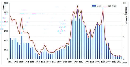 3.1. Epidemiological Characteristics from 1953 to 2014