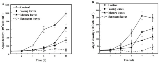 Zhao, M.; Xiao, H.; Sun, D.; Duan, S. Investigation of the Inhibitory Effects of Mangrove Leaves and Analysis of Their Active Components on Phaeocystis globosa during Different Stages of Leaf Age. Int. J. Environ. Res. Public Health 2018, 15, 2434. https://doi.org/10.3390/ijerph15112434