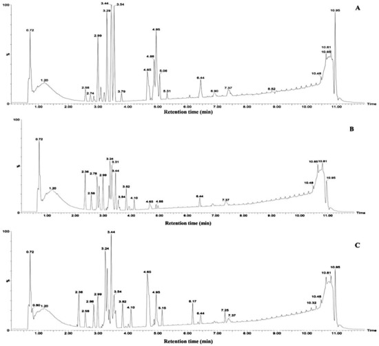 3.3. Identification of Chemical Components