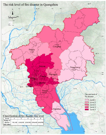 The risk levels of fire disaster in Guangzhou.