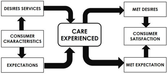 Consumer satisfaction model, modified from Gerkensmeyer et al. [10,11].