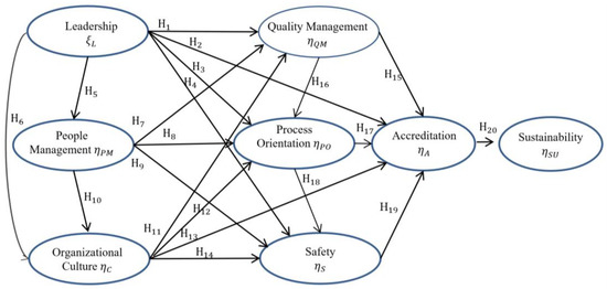 - Sustainability Construct (SU): This construct defines the organization’s ability to deal with challenges and variations that occur over longer periods of time, using a process of continuous improvement. This construct is directly linked to the adoption of quality practices that present more desirable results in the work processes, patient safety, and financial stability of the organization. It considers aspects related to the capacity an organization has to develop, maintain, and constructively promote a more positive performance in work practices, presenting constant improvements in its processes and management system [6,17,18,19,27,33,34,35].
