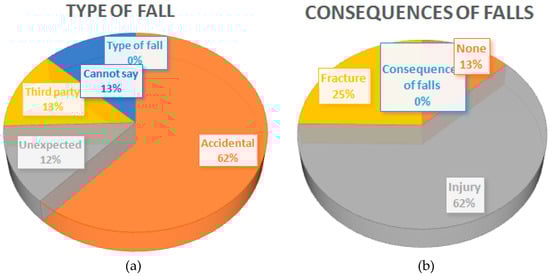 Type and consequences of falls. (a) Type of fall; (b) Consequences of falls.