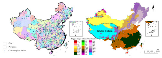 Selected meteorological stations and the climate Köppen of China. (The climate Köppen of China data is downloaded from the World Maps of Köppen-Geiger Climate Classification [12]).
