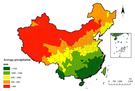 The period of research is from the year 1951 to 2011. The meteorological elements include temperature, precipitation, extreme temperature, and extreme precipitation. The data is downloaded from the National Meteorological Information Center of China [11], which contains 756 meteorological station in China (Figure 1). In addition, Figure 1 demonstrates the climate Köppen of China. After basic cleansing, we use the ArcGIS10.1 (ESRI, Redlands, CA, USA) to interpolate the station data on the whole country scale and then analyze the climate element changing in time sequence by using the least square method. Annual and seasonal distinction is considered, which is divided into December to next February as winter, March to May as spring, June to August as summer, and September to November as autumn.