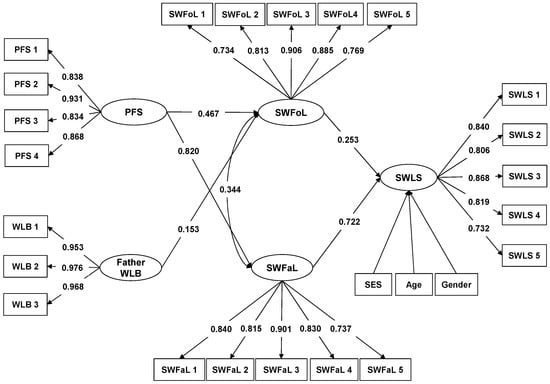 93]. Our findings also showed positive associations between the mothers’ work-life balance and adolescents’ family life and food-related life satisfaction, although these associations were of low strength. Conversely, only a low strength positive association was found between fathers’ work-life balance and adolescents’ satisfaction with food-related life. In addition, we found that satisfaction with family life had a complete mediating role between mothers’ work-life balance and their adolescent children’s life satisfaction, whereas satisfaction with food-related life had a complete mediating role between the work-life balance of both parents and their adolescent children’s life satisfaction.