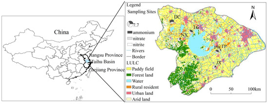 Sampling sites and Land Use/Land Cover (LULC) in the Taihu Basin. The LULC data set was provided by the Data Center for Resources and Environmental Sciences, Chinese Academy of Sciences (RESDC) (http://www.resdc.cn).