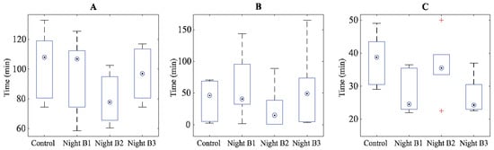 Statistical analyses were performed in SPSS 22 (IBM Corp., Armonk, NY, USA), employing non-parametric methods. Differences between nights were tested using Friedman tests (within-subject), and if a main effect was found then pairwise comparisons were performed using Wilcoxon signed-rank tests. As a pilot, the primary aim of Study A was not hypothesis testing, but rather to inform on the exposures to be used in future, larger studies [