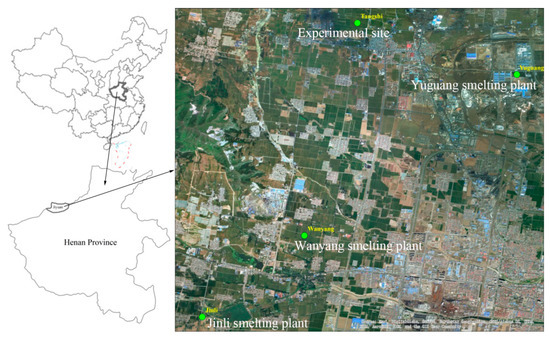 The location of the experimental site and smelting plants.