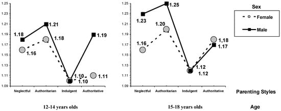 3.5. Interaction Effect between Parenting Style by Sex and Age
