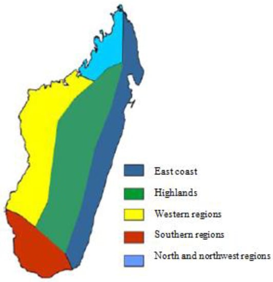 - Williams, J.B. Some Temporal and Regional Variations of Climate in Madagascar; Report no. 144; ODNRI, Chatham: London, UK, 1990. [Google Scholar]