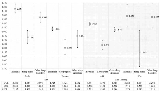 - Han, K.-T.; Kim, W.; Kim, S.J.; Jang, S.-Y.; Ju, Y.J.; Chun, S.Y.; Lee, S.G.; Park, E.-C. Sleep disorders and risk of hospitalization in patients with mood disorders: Analysis of the national sample cohort over 10 years. Psychiatry Res. 2016, 245, 259–266. [Google Scholar] [CrossRef] [PubMed]