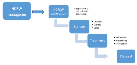 - World Health Organization (WHO). Preparation of National Medical Waste Management Plans in Sub-Saharan Countries, Guidance Manual; World Health Organization (WHO): Geneva, Switzerland, 2005. [Google Scholar]