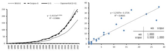 106] (p.1325) “the two databases offer robust tools for measuring science”. However, in this research work and in this specific thematic area, the Scopus database collects a greater number of works and receives a greater number of citations. Osca-Lluch et al., [