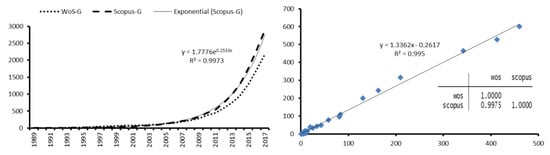 As mentioned in the results section, both databases present a strong correlation with respect to the number of articles published annually, as well as in the number of citations received by the articles. These results show what was affirmed by Archambault et al. [
