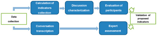 The expert reviews the transcription of the conversation (Section 2.2.5), and freely makes comments about the interventions of participants. Afterwards, the assessment of the expert is compared with the evaluation of participants (Section 2.2.4) for validation, as displayed in Figure 1.