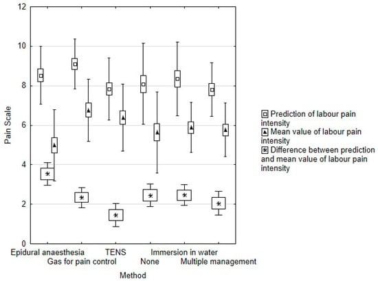Women expected the forthcoming childbirth to be painful, with the mean prediction of labour pain intensity (PLPI) being 8.27 ± 1.65 and these results did not statistically differ among particular groups (p = 0.054, Figure 1).