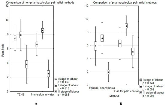 Multiple management was the only approach that reduced the pain in comparison with the previous stages. Further studies should be performed in order to investigate the effectiveness of using one main method of pain relief consolidated with an additional one. Alternative methods such as aromatherapy, massage techniques, acupuncture, music therapy, and yoga should be remembered, as these could be important adjuncts to the major analgesic method [,]. Some studies suggest, that complementary medicine may be useful for the early onset of pain or as a distracter by redirecting the parturient’s attention from the source of pain. These studies also underline the fact that the degree of success of a used technique is correlated with the availability of support staff in both educational and trial phases of the studies, and necessarily in clinical practice. Although the medical staff does not need to be specialized in the topic of alternative labour pain relief therapies, they should have a basic knowledge in this subject and they should be able to give women advice concerning further information because the need for alternative therapies in obstetrics will be rising []. Nowadays, acupuncture tends to be more widely used to manage labour pain. As a complementary medical modality, it has been reported to be effective in improvement of certain painful conditions such as labour pain. Recent studies support the efficacy of acupuncture and acupressure in decreasing labour pain and duration, although debate continues [,]. Using non-invasive techniques, obstetricians can achieve not only pain relief but also an extremely important factor—reduction of anxiety during labour which helps to encourage the mothers to have a vaginal delivery.
